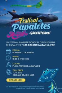 Acapulco, Gro., a 13 de febrero de 2026. – La Secretaría de Turismo del Estado, encabezada por Simón Quiñones Orozco, dio a conocer la realización del Festival de Papalotes Acapulco – Greenpeace México, un evento familiar que busca promover la convivencia, el cuidado del medio ambiente y el disfrute responsable de las playas del puerto.
