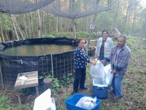 Chilpancingo, Gro., 09 de febrero de 2026.- La Secretaría de Agricultura, Ganadería, Pesca y Desarrollo Rural brindó en la comunidad de El Tejocote del municipio de Chilpancingo acompañamiento técnico acuícola durante la siembra de 2 mil crías de trucha arcoíris, etapa corresponde a la fase de preengorda, en la cual inicia el desarrollo de los peces para posteriormente realizar el desdoble o separación por tallas, previo a la engorda del lote.
