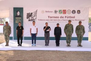 Chilpancingo, Gro, 7 de febrero de 2026.- Como parte de las actividades conmemorativas del Día del Ejército Mexicano y de la campaña “Febrero, Mes del Ejército y Fuerza Aérea Mexicanos”, la Secretaría de la Defensa Nacional, a través de la comandancia correspondiente, llevó a cabo la inauguración de un Torneo de Futbol con la participación de instituciones de seguridad.