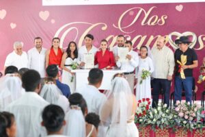 La mandataria estatal destacó que el matrimonio fortalece el tejido social y representa un compromiso basado en el respeto y el amor, libre de violencia. “Hoy celebramos al matrimonio como uno de los pilares de la sociedad. Formar parejas es crear comunidad y futuro para nuestro estado. Ahora tienen certeza de que su unión es legal y se protegen los derechos de sus hijas e hijos”, expresó.