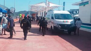 Elementos de la Policía Estatal de la Secretaría de Seguridad Pública realizan recorridos de seguridad y proximidad social en playas de Zihuatanejo de Azueta, brindando atención y orientación a la ciudadanía en zonas de alta afluencia turística.