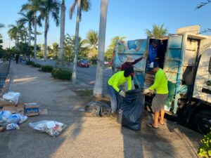Personal de la Promotora de Playas Acapulco realizó labores de limpieza en la bahía de Santa Lucía y mantiene vigilancia permanente a través de su equipo salvavidas, como parte de las acciones para preservar la seguridad y la imagen del destino turístico.