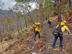 Durante esta jornada, brigadistas de la SEMAREN realizaron la rehabilitación de 500 metros de guardarraya en el Ejido de Xocomanatlán, específicamente en el paraje conocido como Xocomole, una zona estratégica para la contención y control de incendios forestales. Estas acciones contribuyen a reducir la propagación del fuego y a salvaguardar los recursos naturales de la región.