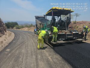 El titular de la CICAEG, Martín Vega González, informó que esta obra, esperada durante años por las comunidades de la región, presenta avances importantes, interviniendo actualmente un tramo de 2 kilómetros, donde se realizan acciones de estabilización de la base, colocación de nueva carpeta asfáltica y señalamiento vial.