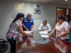 Asistieron a la firma de convenio la tesorera municipal, Magdalena Guillén Cruz, la síndica Patricia Guadalupe Bautista Domínguez; así como la directora de Administración y Finanzas de la CICAEG, Xitlali Sevilla Sánchez, y el director de Obras, Yaquelino Suarez Poblete.