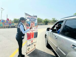 A través de orientación directa, personal de la Dirección General de Prevención Social del Delito de la Secretaría de Seguridad Pública se despliega en puntos estratégicos del municipio de Copala, con el objetivo de brindar información preventiva que permita a la ciudadanía disfrutar de unas vacaciones seguras y sin contratiempos.
