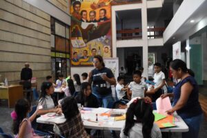 Durante el taller la mediadora de lectura, de manera dinámica y creativa enseñó a elaborar los minilibros llenos de divertidas historias, donde los infantes aprendieron a realizar estas actividades de manera interactiva.