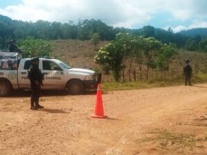 En el municipio de Tecpan de Galeana, personal de la Policía Estatal de la Secretaría de Seguridad Pública realiza recorridos de vigilancia y proximidad social sobre la carretera estatal que comunica a diversas localidades de la Sierra, con el objetivo de inhibir conductas delictivas.