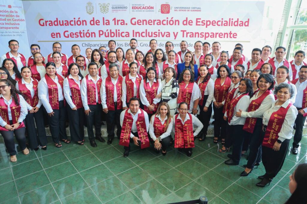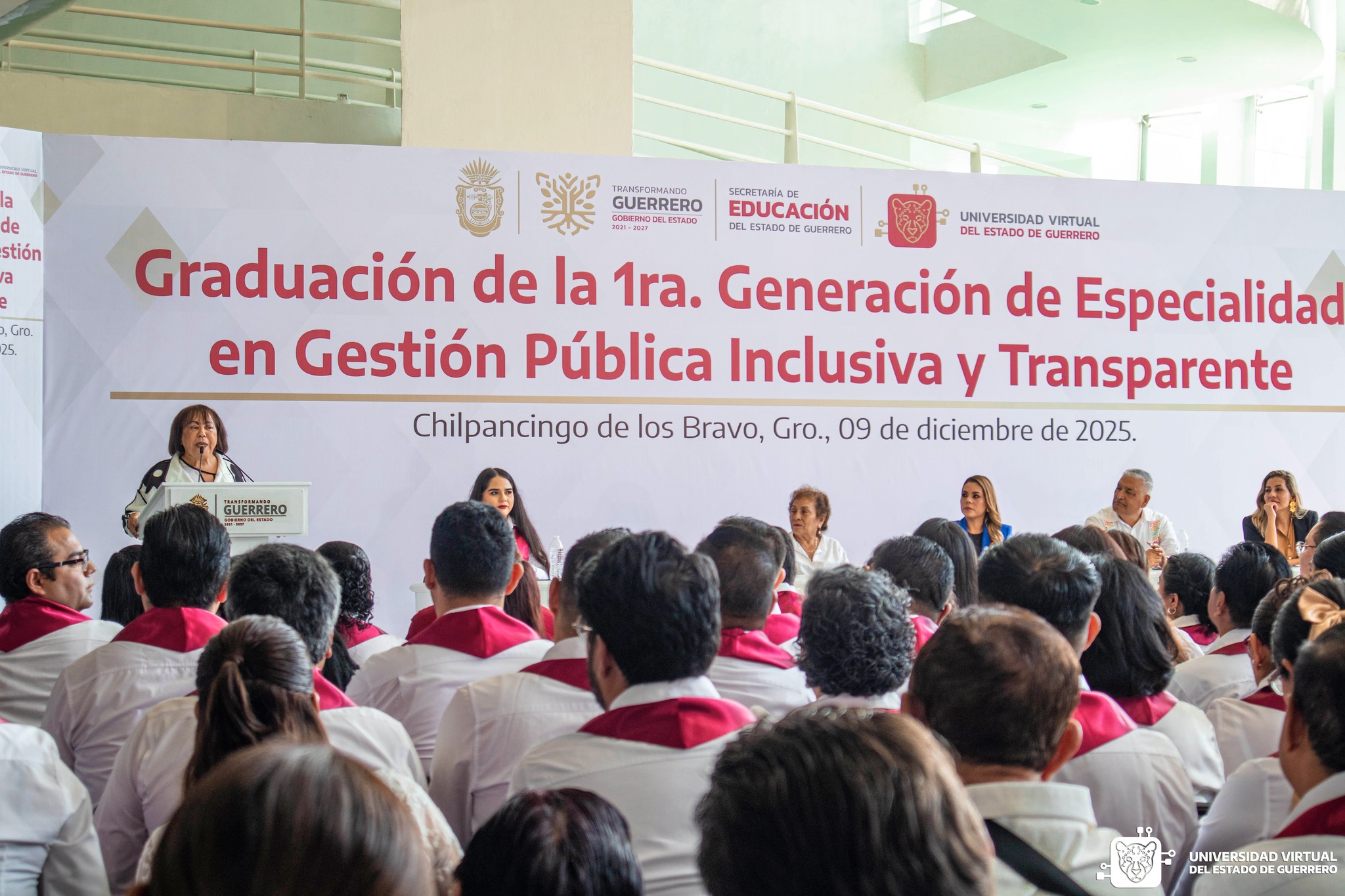 Este martes 9 de diciembre, la Universidad Virtual del Estado de Guerrero (UVEGro) realizรณ la entrega de tรญtulos a las y los egresados de la primera generaciรณn de la Especialidad en Gestiรณn Pรบblica Inclusiva y Transparente, contando con el honor de tener como madrina a la Gobernadora del Estado, Mtra. Evelyn Salgado Pineda.