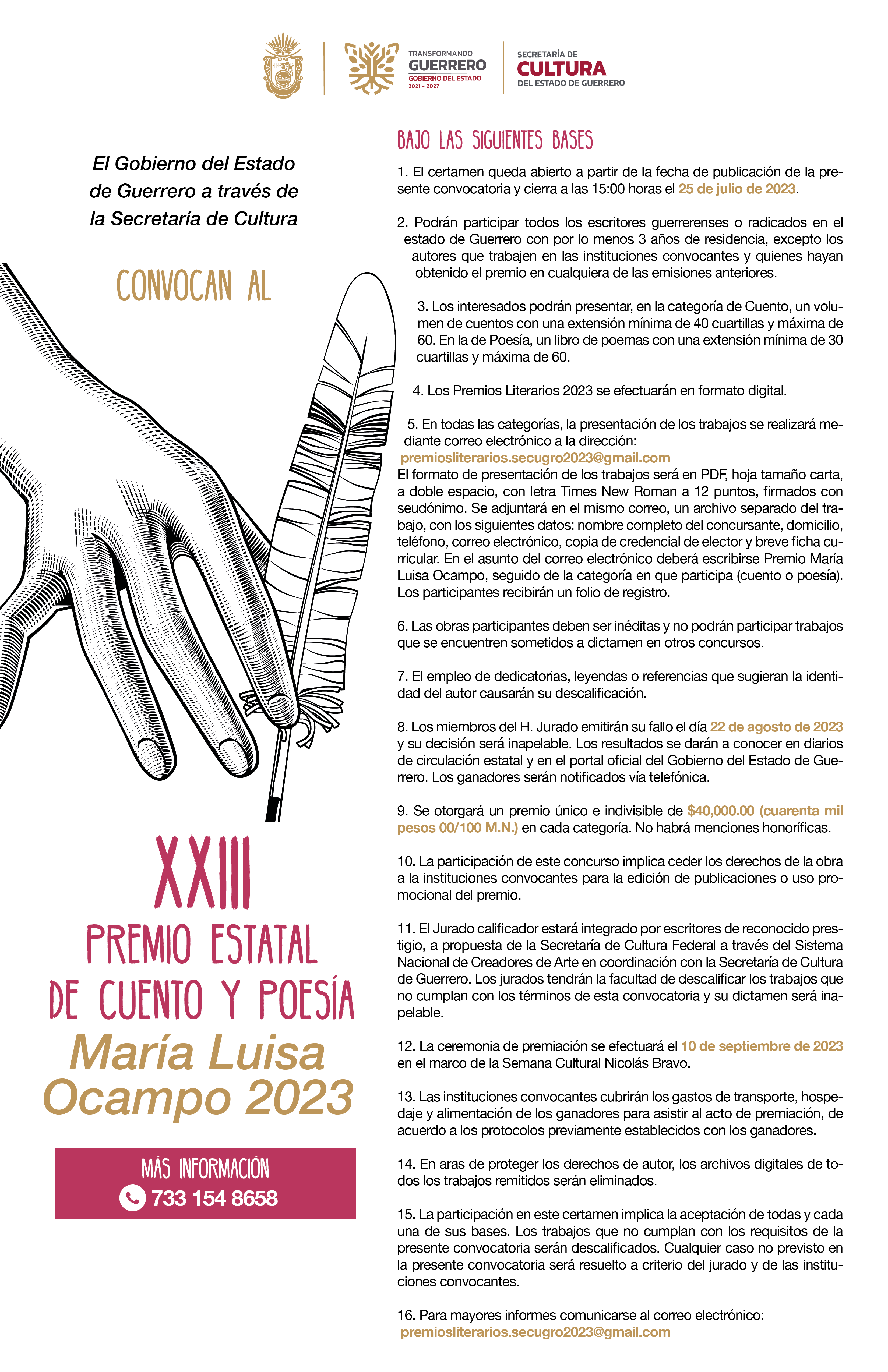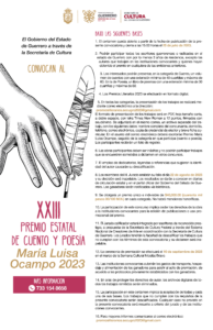 EL Gobierno del Estado de Guerrero a través de la Secretaría de Cultura, convocan al XXIII Premio Estatal de Cuento y Poesía