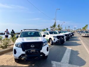 Acapulco, Gro, 18 de Noviembre de 2023.- En busca de sumar esfuerzos en la reconstrucción de Guerrero y Acapulco tras el paso del huracán “Otis”, el gobierno de Guerrero, recibió de parte del gobierno Federal, a través de la Secretaría de Turismo de México, 10 unidades nuevas de auxilio turístico a Los Ángeles Verdes que brindarán apoyo a los turistas en las principales vías de comunicación de Guerrero, esto dando seguimiento a los apoyos que requiere el estado para su reactivación, turística y económica.