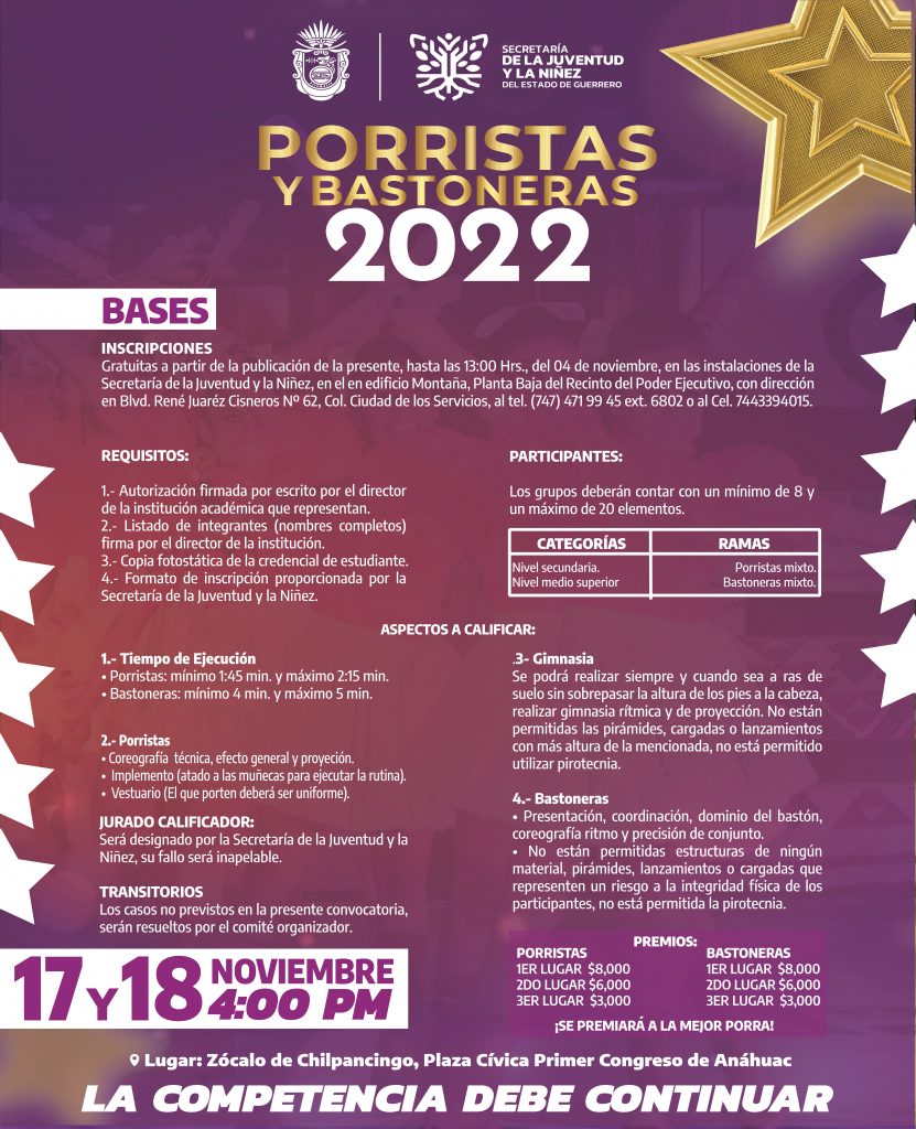 BASES DE LA CONVOCATORIA “PORRISTAS Y BASTONERAS 2022”