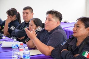 En su mensaje, la titular de la SEMUJER, Violeta Pino Giró recordó que para el cumplimiento de las alertas, se necesita de la coordinación y cooperación de los tres órdenes de gobierno, por lo que estas capacitaciones buscan acercarse al cabildo, funcionarios y personal administrativo que integran a las nuevas administraciones locales, para informar ampliamente sobre las implicaciones de la Declaratoria de Alerta de Género, sus componentes, los ejes de acción, los organismos que lo integran, el marco jurídico y los alcances y responsabilidades de los municipios.