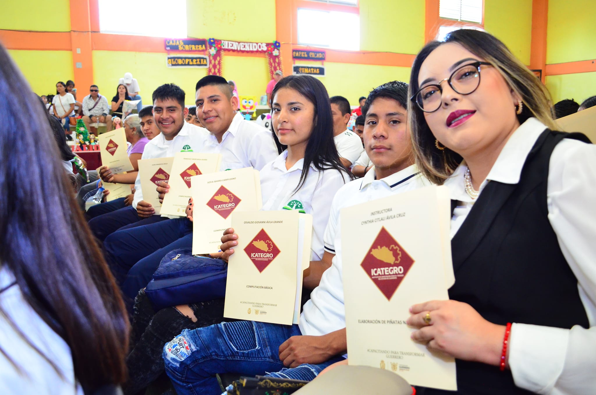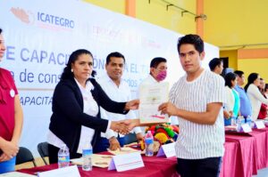 ICATEGRO; el día de ayer, el Director General del Instituto de Capacitación para el Trabajo del Estado de Guerrero, Lic. Omar Estrada Bustos, junto al Mtro. Salomón Beltrán Barrera, Delegado de Servicios Educativos Región Norte y representante de la Gobernadora Constitucional del Estado de Guerrero; y la Presidenta Municipal Constitucional de Pedro Ascencio de Alquisiras (Ixcapuzalco), llevaron a cabo la entrega de constancias a las y los egresados de los cursos impartidos durante los meses de enero – mayo del presente año de la Unidad de Capacitación Teloloapan, dirigida por la Mtra. Ma. Clarita Ocampo Cortes, a través de la cual se han capacitado a 1,295 personas, mayoritariamente mujeres, a través de 51 cursos de capacitación en 17 especialidades de capacitación.