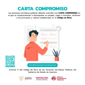 Servidora, Servidor Público el @GobiernodelEstadodeGuerrero a través de #ContraloríaGro te invita a firmar tu Carta Compromiso y dar cumplimiento a lo establecido en el artículo 17 del Código de Ética.