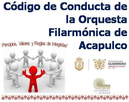 La Orquesta Filarmónica de Acapulco como Establecimiento Público de Bienestar Social, está comprometida con los guerrerenses difundiendo la cultura musical a través de la presentación de los diferentes conciertos de música sinfónica. En este sentido se elaboró el Código de Conducta de los Servidores Públicos para considerarlo como base en nuestro actuar.