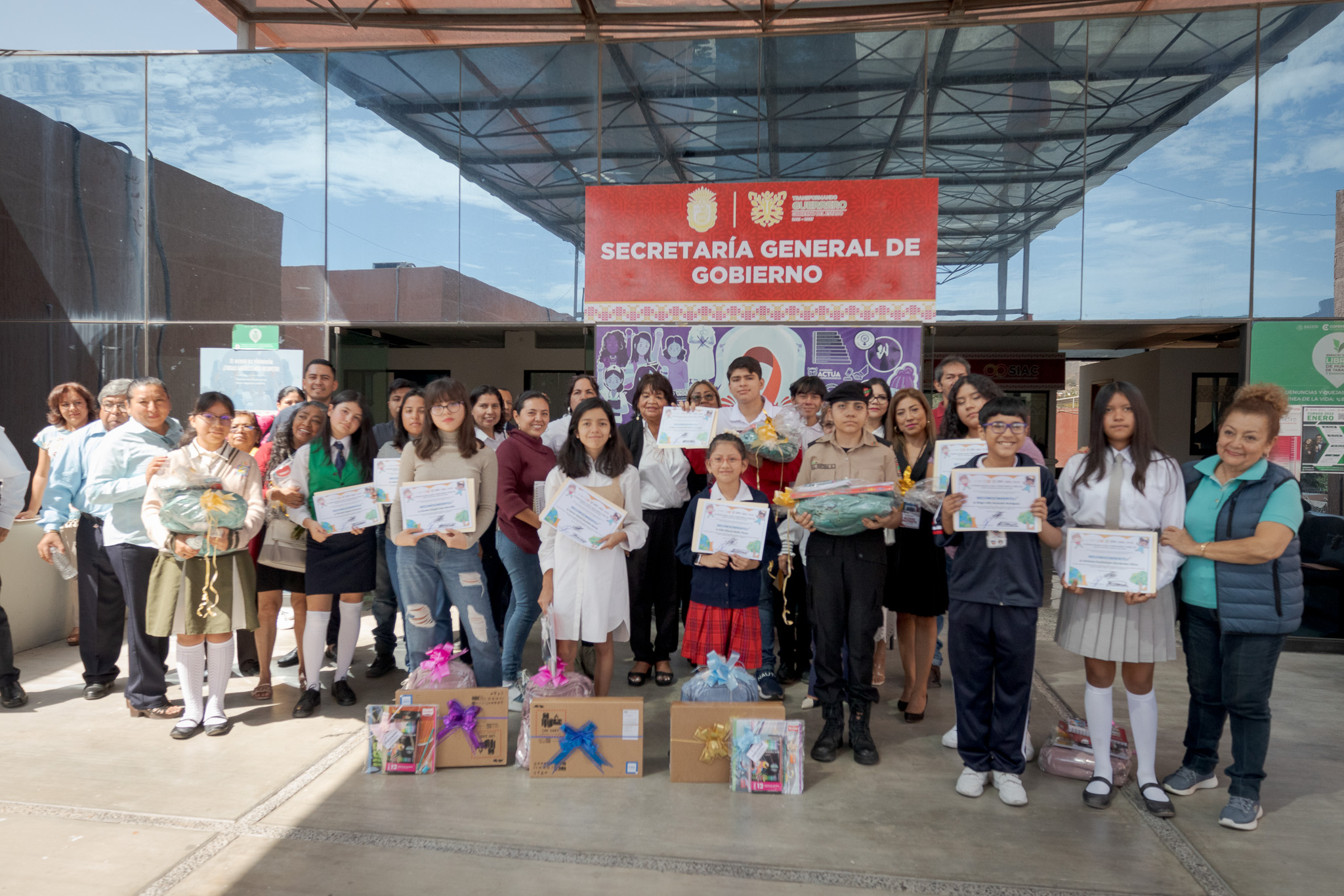 Chilpancingo, Gro., 30 de enero del 2024.- En el marco de la trigésima edición del Concurso Nacional de Dibujo y Pintura Infantil y Juvenil 2023, con el tema “Cómo te imaginas a México en el 2030”, talentos guerrerenses de diferentes regiones del Estado, obtuvieron primeros lugares por lo cual el Gobierno del estado de a través del Consejo Estatal de Población (COESPO), que preside María de los Ángeles Santiago Dionicio, llevó a cabo la entrega de premios y reconocimientos a niñas, niños y adolescentes ganadores de esta edición del concurso.