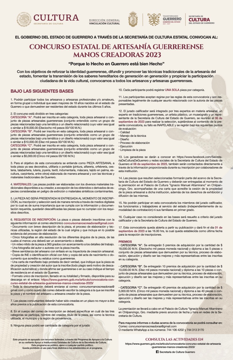 https://www.guerrero.gob.mx/articulo/convocatoria-concurso-estatal-de-artesania-guerrerense-manos-creadoras-2023/