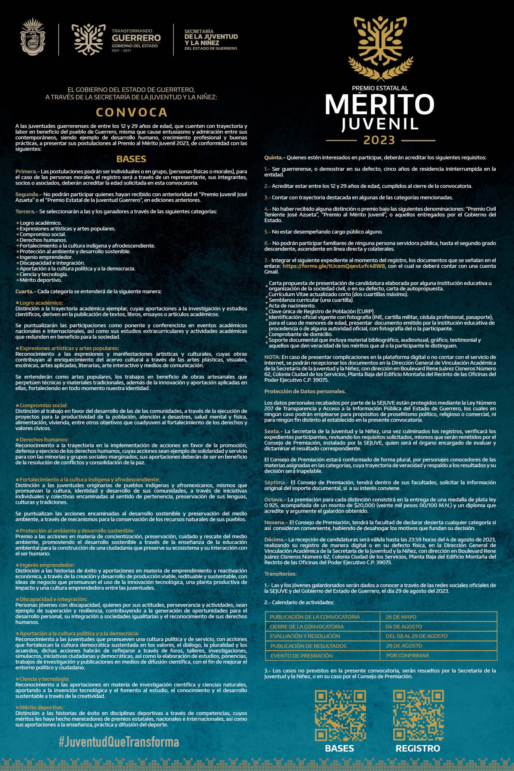 CONVOCATORIA PREMIO ESTATAL AL MERITO JUVENIL 2023
