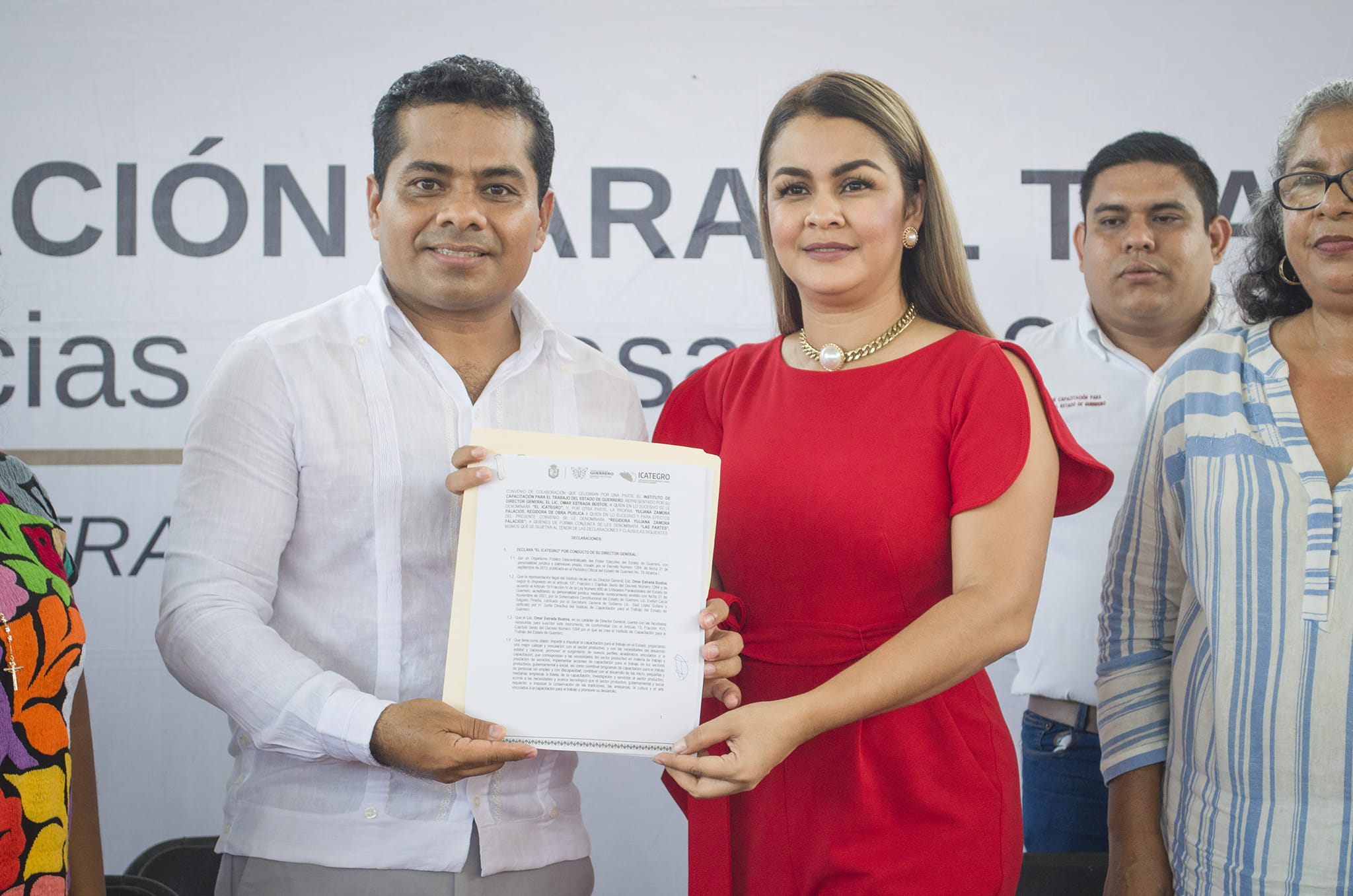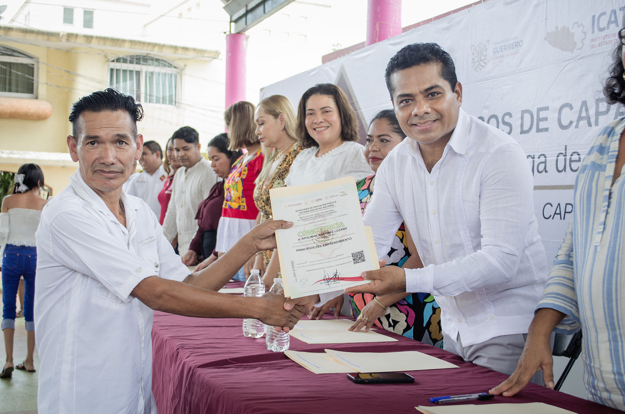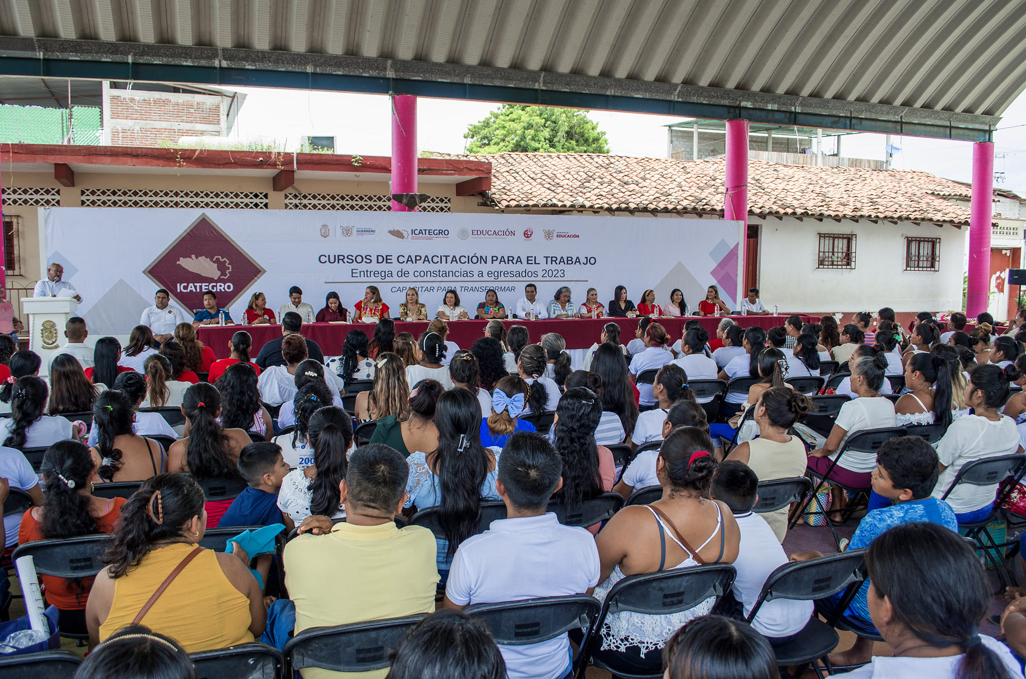 Atendiendo las indicaciones de nuestra Gobernadora, la Mtra. Evelyn Salgado Pineda, el día de hoy, el Director General del ICATEGRO, Lic. Omar Estrada Bustos, junto a la Mtra. Silvia Talavera Organes, Secretaria General del H. Ayuntamiento de Coyuca de Benítez y representante personal del C. Ossiel Pacheco Salas, Presidente Municipal de Coyuca de Benítez, y la Lic. Dulce María Deloya Díaz, Presidenta del DIF Municipal de Tecpan de Galeana; llevaron a cabo la entrega de constancias a egresados que concluyeron satisfactoriamente los cursos de capacitación impartidos por la Acción Móvil Coyuca de Benítez, dirigida por el Lic. Jesús Medina Galeana, a través de la cual se han capacitado a 1,105 guerrerenses, mayoritariamente mujeres, a través de 40 cursos de capacitación en diferentes especialidades de ocupacionales en el periodo de enero – agosto 2023.