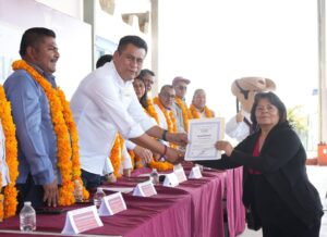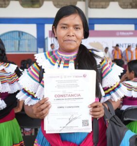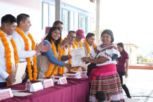 La ceremonia se realizó específicamente en la localidad de Zompeltepec, donde las y los participantes hablantes de la lengua náhuatl culminaron satisfactoriamente diversos cursos impartidos por la Acción Móvil Chilapa.