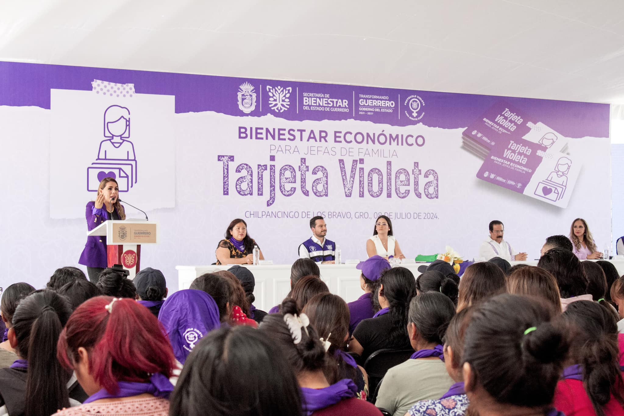El Gobierno del Estado de Guerrero, que encabeza la Mtra. Evelyn Salgado Pineda, en coodinación con la Secretaría de Bienestar del Estado de Guerrero, que dirige el Mtro. Pablo Gordillo, llevaron a cabo el evento de Entrega de Tarjetas Violetas, con el objetivo de fortalecer la autonomía, el empoderamiento y formación de las mujeres en situación de vulnerabilidad social y económica; como parte de este importante programa, el ICATEGRO, dirigido por el Lic. Omar Estrada Bustos, participó con un stand informativo en el que las beneficiarias recibieron atención especializada sobre los cursos de capacitación y servicios que ofrece este Instituto, a fin de que las mujeres guerrerenses adquieran competencias, habilidades y los conocimientos necesarios para su transformación individual y consoliden su economía.
