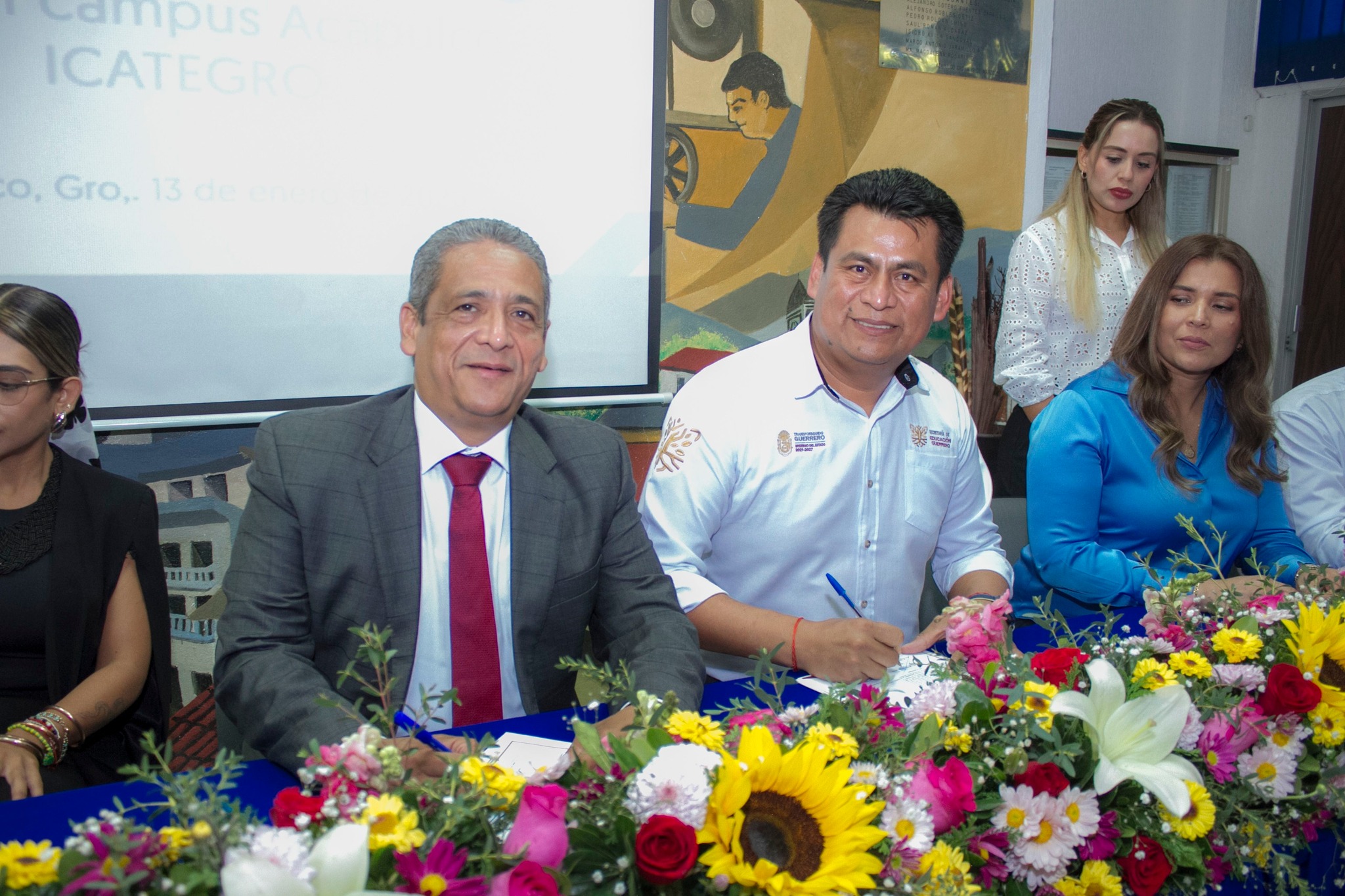 Para ampliar y fortalecer la formación e inclusión de los jóvenes universitarios en el sector laboral, tal y como lo ha instruido nuestra Gobernadora, la Mtra. Evelyn Salgado Pineda, el día de hoy, el ICATEGRO, dirigido por el Mtro, Marco Antonio Marban Galván, celebra la firma de un convenio de colaboración con el Instituto Tecnológico de Acapulco, encabezada por el Director, Lic. Salvador Herrera Soriano, con el objetivo de brindar capacitaciones integrales y cursos especializados de alto impacto a la comunidad universitaria que les permita innovar, realizar prácticas y obtener experiencia laboral para cimentar su futuro.
