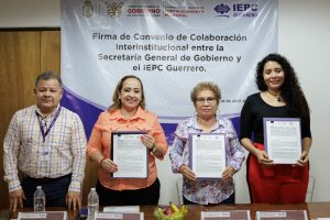 Chilpancingo, Gro., a 14 de abril de 2023.- Bajos los principios de democracia, igualdad y respeto a los derechos políticos, se llevó a cabo la Firma de Convenio de Colaboración Interinstitucional entre la Secretaría General de Gobierno y el Instituto Electoral de Participación Ciudadana del Estado de Guerrero (IEPC).