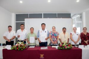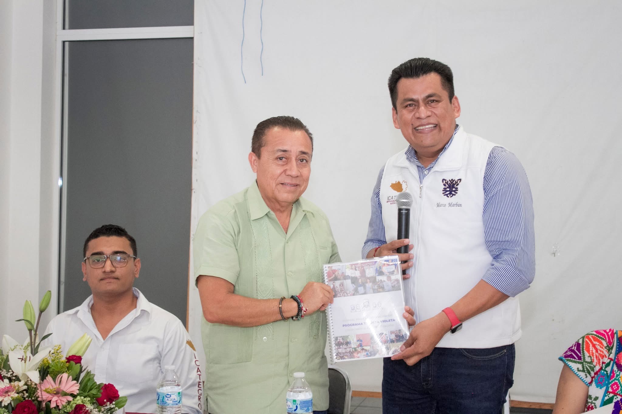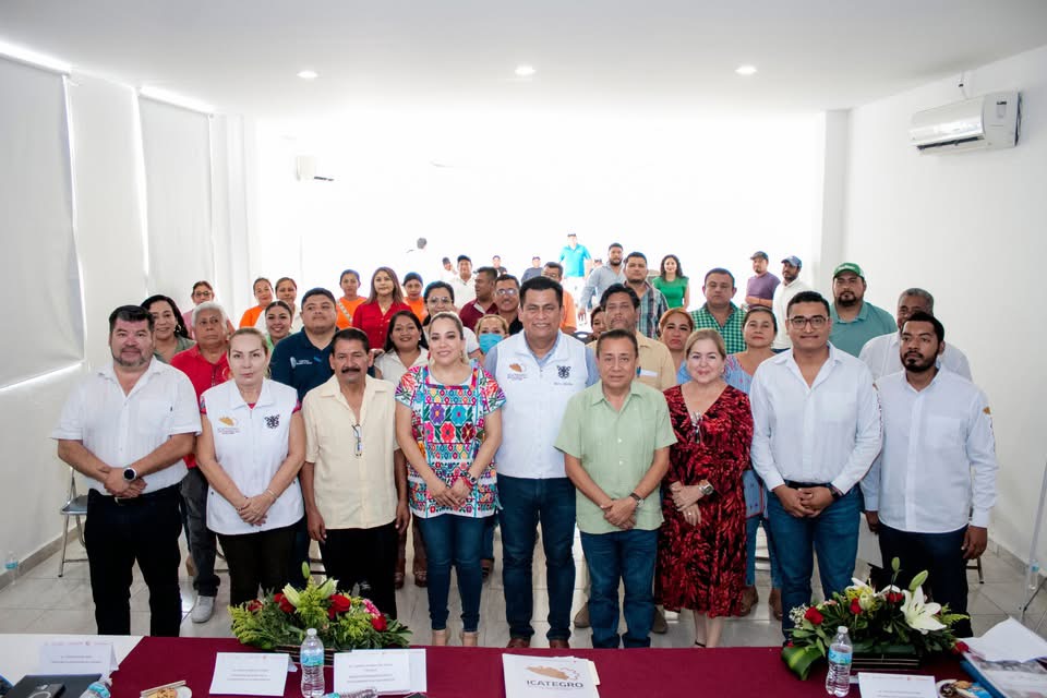 Marcos, Lic. Denise Guadalupe Valle Trujillo; C. Marco Antonio Cortes López, Regidor de Educación y Cultura; C. Alejandro Agatón Centellano, Regidor de Pueblos Indígenas y Afromexicanos, y directivos del ICATEGRO.