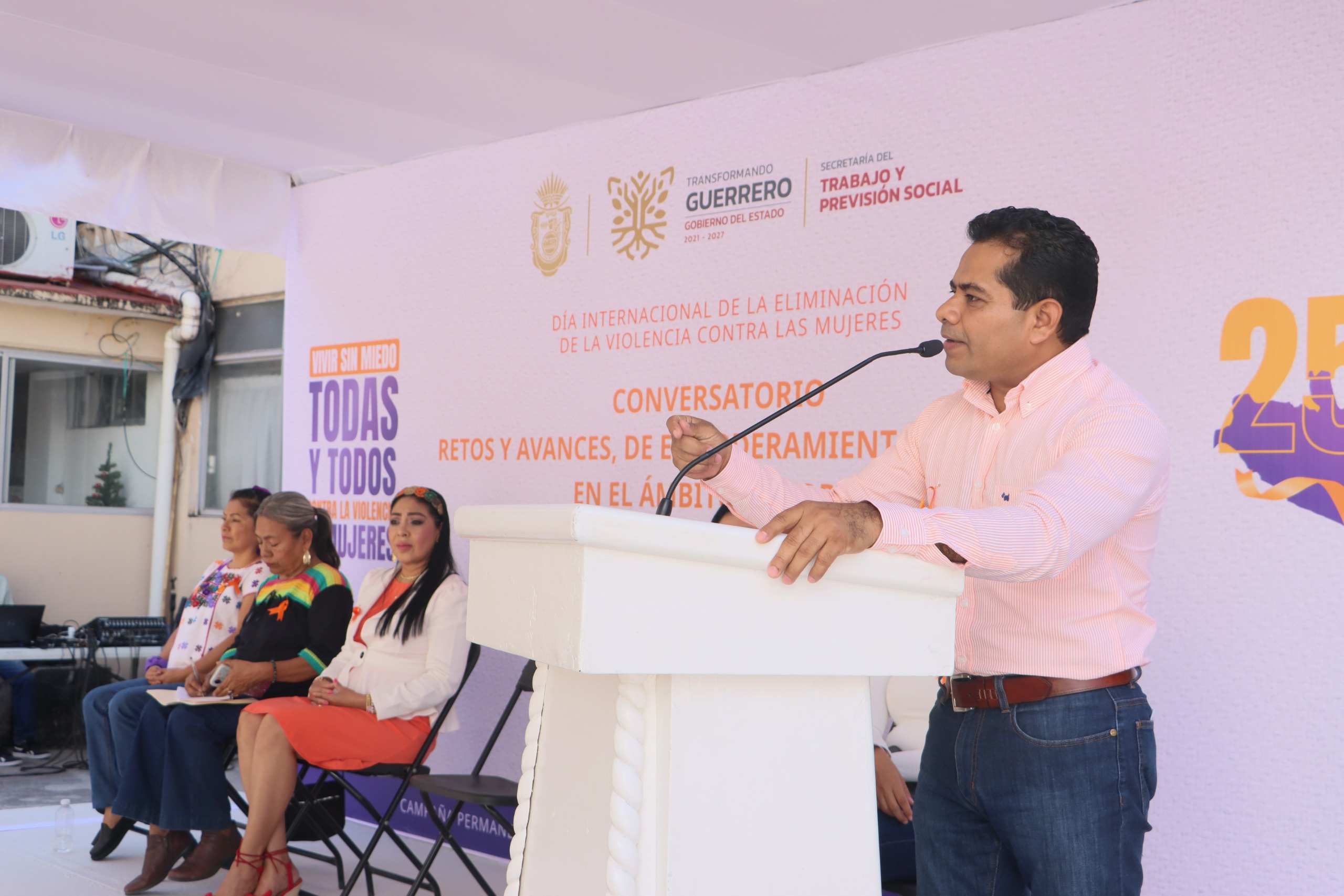 Chilpancingo, Gro., 25 de noviembre de 2025.- Para seguir fomentando el diálogo y el intercambio de experiencias sobre los retos y avances en el empoderamiento de las mujeres en el ámbito laboral, en seguimiento a las políticas públicas que promueve la gobernadoraEvelyn Salgado Pineda , a través de la Secretaría del Trabajo y Previsión Social (STyPS), se realizó el Conversatorio “Retos y Avances de Empoderamiento a Mujeres en el Ámbito Laboral”, en el marco del Día Internacional de la Eliminación de la Violencia contra las Mujeres, que se conmemora los días 25 de noviembre.