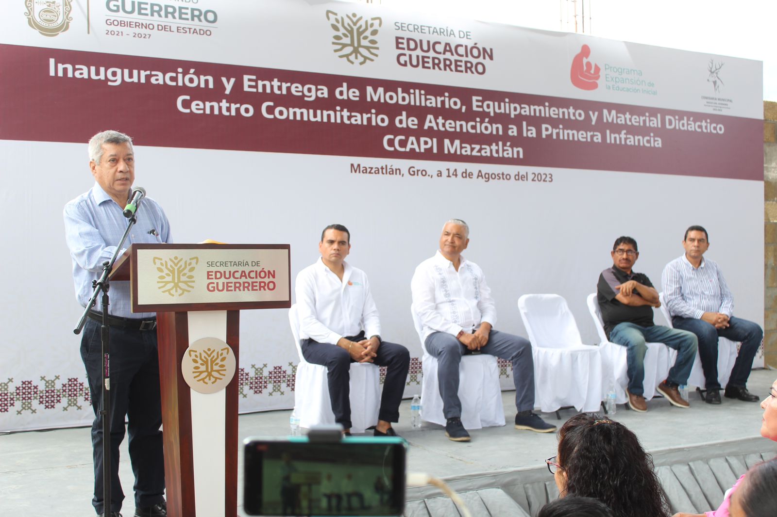Mazatlán, Chilpancingo de los Bravo, Gro.- El secretario de Educación en Guerrero, Marcial Rodríguez Saldaña, inauguró el “Centro Comunitario de Atención a la Primera Infancia (CCAPI)”, en esta comunidad, al cual podrán asistir niños de cero a tres años, que serán atendidos por agentes educativos, para enseñarles en esta etapa inicial y recibirán alimentos saludables, todo de manera gratuita.