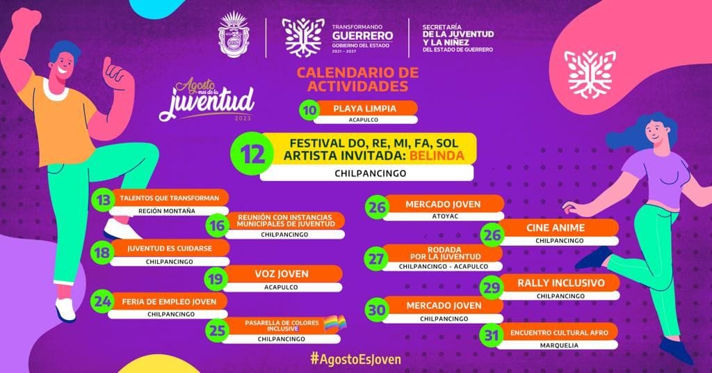 Para el 29 de agosto se tiene previsto el Rally Inclusivo y el día 30 el Mercado Joven en la ciudad de Chilpancingo