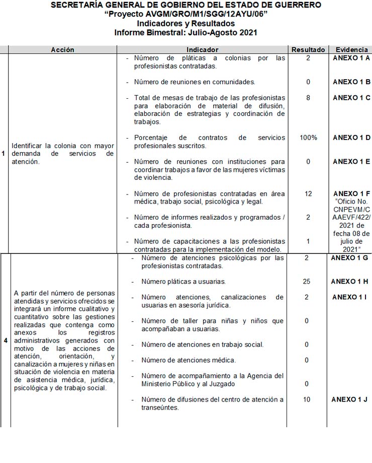 “Proyecto AVGM/GRO/M1/SGG/12AYU/06” – Indicadores y Resultados – Informe Bimestral: Julio-Agosto; Septiembre-Octubre; Noviembre-Diciembre 2021