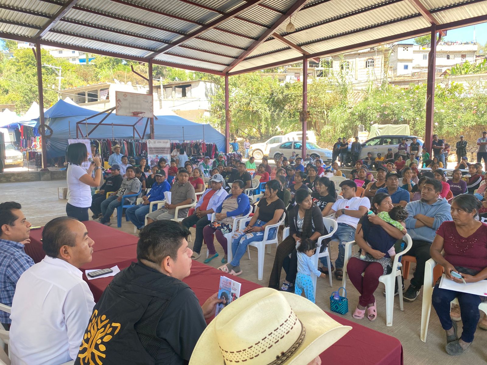 En su intervención, el secretario para el Desarrollo de los Pueblos Indígenas y Afromexicanos, Abel Bruno Arriaga, indicó que su dependencia durante esta jornada ofrece asesorías jurídicas, información sobre programas y orientación para presentar demandas ante el Consejo Nacional para Prevenir la Discriminación (Conapred).