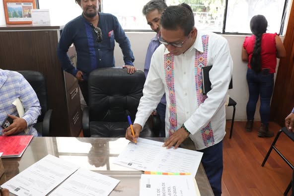 El secretario para el Secretaría para el Desarrollo de los Pueblos Indígenas y Afromexicanos, Mtro. Abel Bruno Arriaga, sostuvo una reunión en las oficinas de SEDEPIA con el comisario municipal de la comunidad de Santa Cruz, municipio de Santa Cruz del Rincón, C. Lucas Oropeza Neri; la secretaria de la comunidad, Gabriela Castro; y la regidora de Asuntos Indígenas e Igualdad de Género del Ayuntamiento Municipal de Santa Cruz del Rincón, C. Antonia Castro Espinobarros, para escuchar y dar seguimiento a las necesidades de infraestructura de la comunidad.