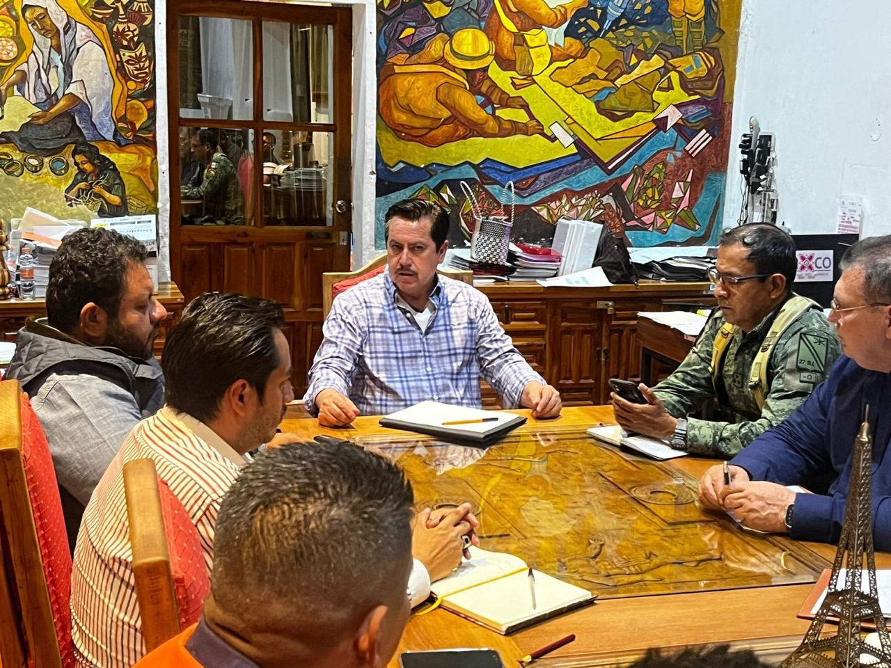 La tarde de este miércoles en las instalaciones de la Sala de Cabildo de Palacio Municipal de Taxco, se realizó esta reunión de trabajo donde participaron funcionarios de la Secretaría General de Gobierno del estado; el alcalde Mario Figueroa Mundo, así como Rodolfo Martínez Menes, Delegado de Gobierno en la zona Norte; el Coordinador de la Policía Estatal en la región norte, Mariano Bernal González, así como mandos de la SEDENA y de la Policía Estatal.