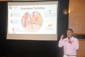 Todos los asistentes escucharon atentos no solo a la SECTUR Guanajuato, sino que también conocieron la oferta del segmento de naturaleza y aventura presentada por Raúl Jaramillo Esparza Farias, presidente de Turismo Alternativo de Guanajuato; y la oferta del segmento enológico a cargo de Erika Díaz Mercado, Sommeliers y Directora del Club de Vino de Guanajuato.