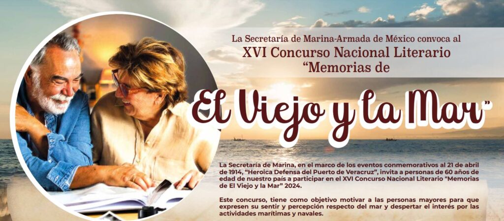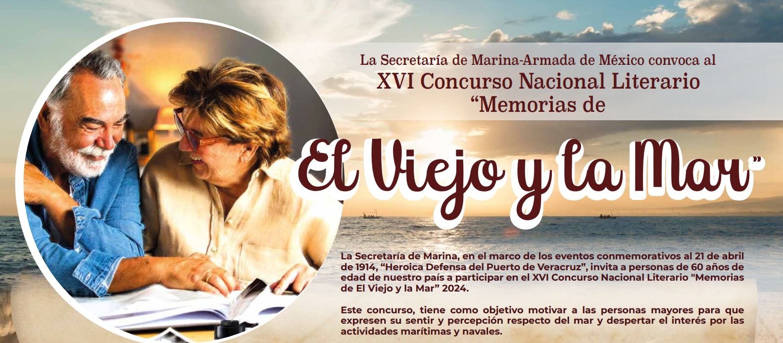 La Secretaría de Marina, en el marco de los eventos conmemorativos al 21 de abril de 1914, “Heroica Defensa del Puerto de Veracruz”, invita a personas de 60 años de edad de nuestro país a participar en el XVI Concurso Nacional Literario “Memorias de El Viejo y la Mar” 2024.