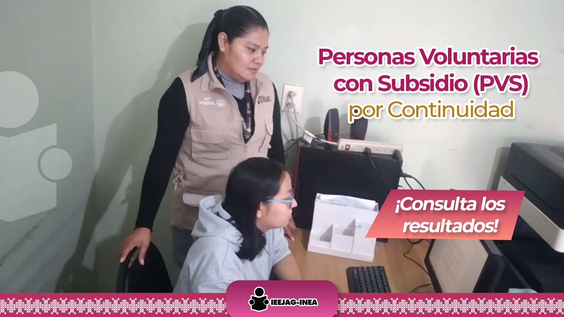 Las personas cuyo número de folio aparece en esta publicación, fueron seleccionadas como Personas Voluntarias con Subsidio (PVS) por Continuidad. A partir de la fecha asignada, iniciarán con las actividades a efecto de apoyar el Programa de Educación para Adultos que ofrece Alfabetización, Primaria y Secundaria, para personas jóvenes y adultas en situación de rezago educativo.